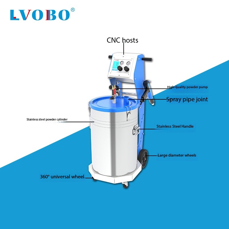 The electrostatic powder spraying machine operates based on the principle of electrostatic adsorption. When powder coating is sprayed from the spray gun, the powder particles are negatively charged by the high-voltage electrostatic field. And the coated workpiece is grounded, forming a positive potential difference. Under the traction of electric field force, negatively charged powder particles quickly and uniformly adsorb onto the surface of the workpiece, forming a flat and dense coating. Subsequently, after heating treatment in the curing furnace, the powder coating melts, flattens, and solidifies, tightly adhering to the surface of the workpiece, endowing it with excellent appearance and protective performance.